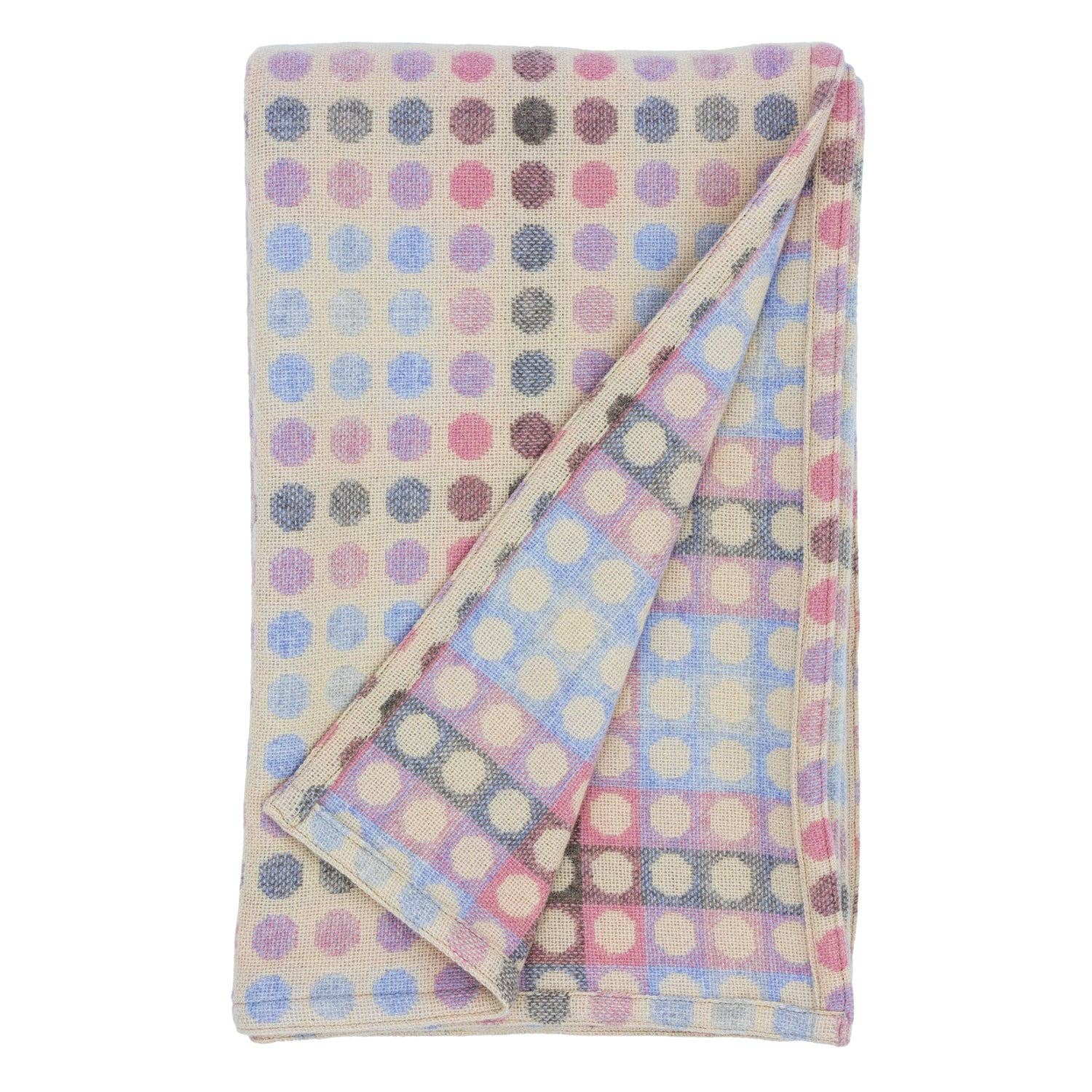 Our funky spot blanket, a contemporary take on traditional Welsh tapestry was first woven here in 1999 and has been in continuous production in the mill ever since. Made from 100% Lambswool these blankets are soft, warm and easy to care for.